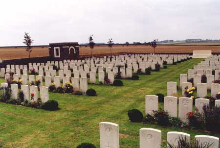 Roclincourt Valley Cemetery entrance and Cross of Sacrifice.